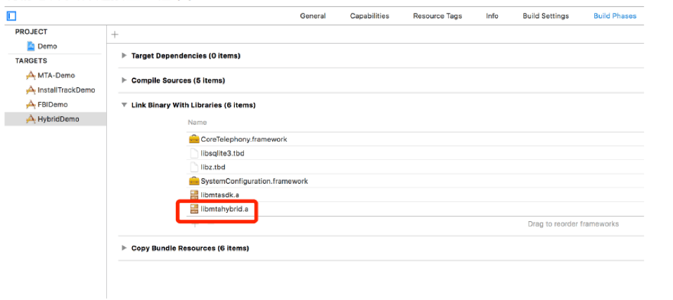 1、在 MTA iOS SDK 包中的sdk/plugin/hybrid目录下找到libmtahybrid.a 静态库和MTAHybrid.h头文件