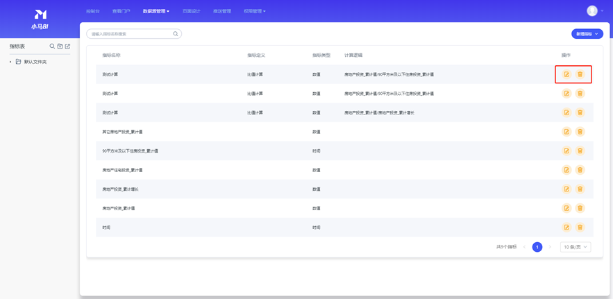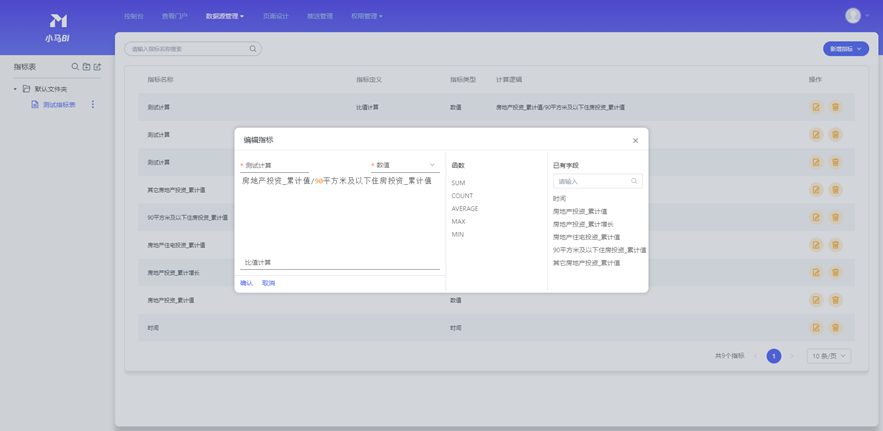 指标表通过选取某张已有数据表中字段形成新表并且可对字段创建计算逻辑。
